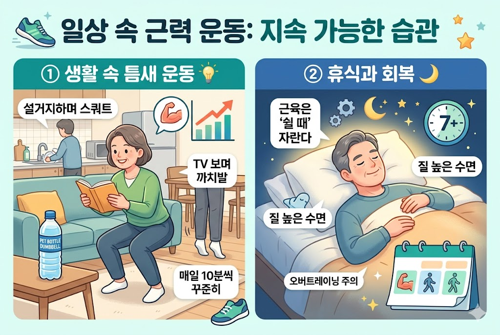 5️⃣ 일상 속 근력 운동: 지속 가능한 생활 습관 🏃‍♂️